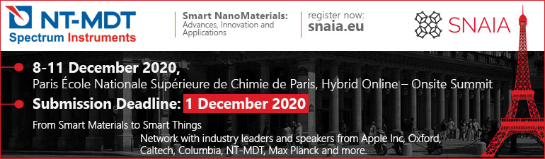 NT-MDT Spectrum Instruments is happy to invite you to annual SNAIA Conference on Smart Nanomaterials taking place virtually in École Nationale Supérieure de Chimie de Paris, Paris Tech from 8th to 11th of December 2020.