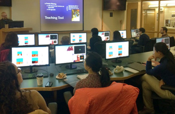 | Photos from the CMU Workshop: The lecture room (left) and the live demo of the NT-MDT Spectra system (right). | ||