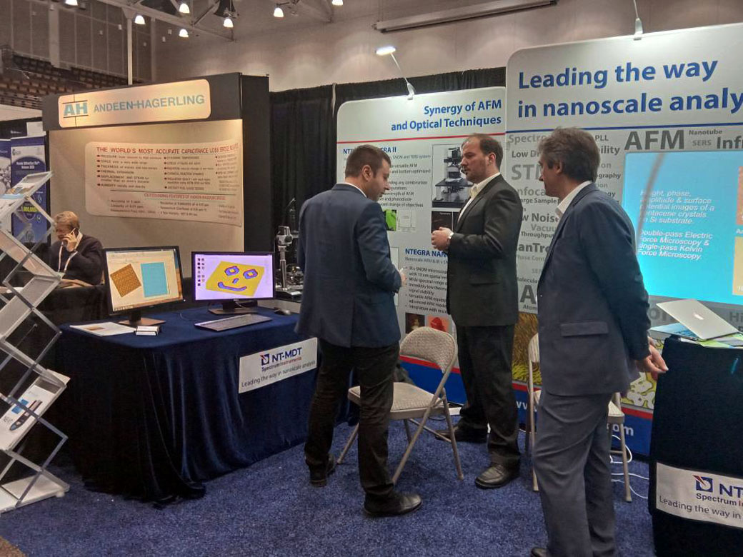 NT-MDT Spectrum Instruments would like to thank all participants and organizers of the Fall MRS conference held last week in Boston. It was a great show, all visitors of our booth were impressed with our latest developments in AFM area, especially with new mode for automated scanning in semicontact mode (also known as tapping) – ScanT™. If you didn’t have a chance to stop by our booth last week to discuss your applications or to find out about our latest AFM technologies, we encourage you to contact your local representative. We will be glad to address your questions, run samples and provide with demonstrations of our systems.