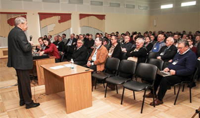 Honor to open the section "Scanning Probe Microscopy" was delegated to Victor Aleksandrovich Bykov, General Director of NT-MDT and president of Nanotechnology Society of Russia. In his report "New features of scanning probe microscopy and spectroscopy" Viktor Aleksandrovich told about new developments in the field of micromechanics. Also he told about SPM system that are planned to be in serial production in this and next year. Pleased to note that this topic has caused a great interest among the audience, many of whom have been familiar with NT-MDT and devices produced by this company for a long time.>
