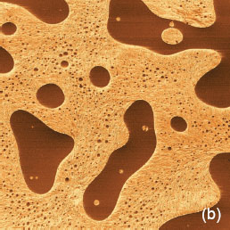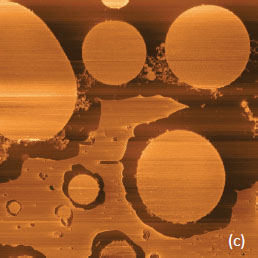 The time changes of the imprint profile hint at the affine character of the recovery similar to the finding in the experiments on styrene-butadiene copolymers [24]. In the same paper, it was shown that the depth of the imprint follows the variations of the corresponding homogeneous creep-recovery experiment. Therefore, by imaging the imprint one can obtain the variations of the polymer compliance function. This example shows that local mechanical properties of polymers and other materials can be examined in different AFM-based experiments with the choice of the most appropriate mode.