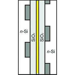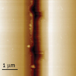 In this sample, the strips of p-doping (p~1020 cm-3) were formed on a Si wafer by a BF2 ion implantation of the substrate surface. To investigate the sample in a cleaved-surface geometry, two strips of a diced sample were glues together before their final polishing. An epoxy which fills the slit between the pieces prevents the tip from being broken by a sample edge.