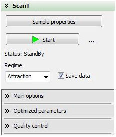 The module has a user-friendly interface which allows the straight forward launching of the imaging procedure (Fig.5). To run a measurement, an attractive or repulsive scanning regime is chosen and then the scan is started.