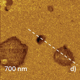 By analogy with phase images in AM-PI mode, the contrast of frequency images depends on a number of factors [7] and can be reversed as seen from a comparison of Figure 2d with the image on the 1st page. This complicates the analysis of phase and frequency images.
