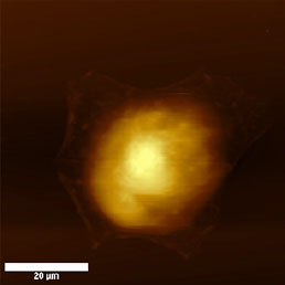Cell cultures are usually the biggest samples used in AFM investigations of biological samples. Their lateral size exceeds tens of µm and vertical size depending on the cell line can be several µm. They are one of the softest materials for scanning because they lack cell wall and the naked plasmatic membrane comes in contact with the AFM probe. Because of the fragility and the nature of tissue cells, these samples should be measured in liquid environment, because during drying they loose their natural features.
