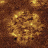 The analysis of the AFM and KPFM of the PS-PVAC films can get strong support from local spectroscopic studies. Remarkably, the Raman spectroscopy signalfrom thin film (around 140 nm in thickness) was good enough to generally prove the indirect assignment of surface domains to the individual blend components. This is seen in Fig. 3 where one sees topography and Raman maps for PS and PVAC components, which were obtained on a location similar to one shown in Fig. 2.