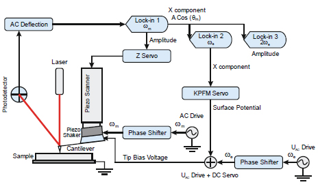 Up to 5MHz for photodetector and 3 lock-in amplifiers - Amplitude/Phase Modulation detection of electrostatic tip sample interactions