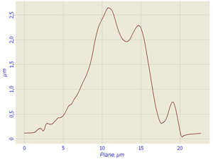 Also we observed the neutrophils where the nucleus was defined badly, however could be revealed using profile of the cell. Cells had the round form. In this case only adhesion of a cell to a glass surface, but not it spreading was observed only. Practically all cytoplasm appears concentrated near a nucleus. That decreases the resolution of a cell. Granules of cytoplasm are not identified practically. The cell has a rough surface that also could be seen on cell profile (Fig.2).