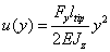 From formula (8) and diagram for the beam vertical bending of y-type (Fig. 1) it is easy to derive the tip deflection