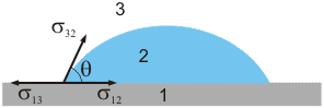 - At the interface between three media the contact angle arises which is determined by coefficients of surface tension and is calculated according to the Neumann formula (2).