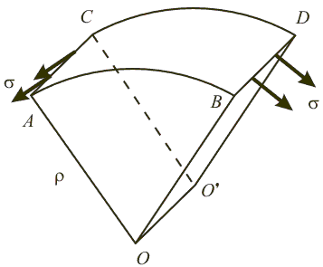 The second consequence is the curved surface pressure appearance. Consider a local flat surface area. It is clear that any deformation gives rise to its square and, hence,