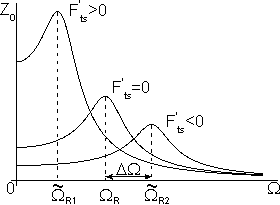 Thus, the force gradient results in an additional shift of a vibrating system amplitude-frequency characteristic (AFC) and phase-frequency characteristic (PFC). Fig. 1 shows AFC and PFC at different values of