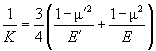 where R – tip radius of curvature, N – normal loading force, K – reduced Young's modulus, given by