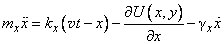 For qualitative understanding of the nanofriction model we shall consider, first, the one-dimensional model of probe oscillations in one direction along the Ox-axis. Potential (1) in this case is reduced (by eliminating non-principal constants) to the following