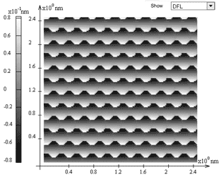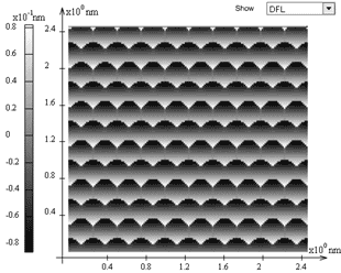 The built-in program (see Flash model) allows to depict with shades of grey the deflections of the probe from the non-deformed position along Ox and Oy axes – signals LAT and DFL, respectively. The user can choose any signal distribution to display from the drop-down menu in the top right corner upon calculation completion.