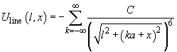 . However, calculation of such a sum in analytic form is impossible. Nevertheless, the mean value of potential can be easily obtained by reducing summation to integration and assuming that atomic density is "uniformly spread" over a sample volume.