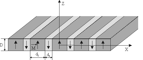 Fig. 1. Schematic representation of magnetic domains periodic parallel structure.