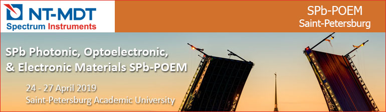 NT-MDT Spectrum Instruments is delighted to announce our participation at SPb Photonic, Optoelectronic, & Electronic Materials (SPb-POEM) Conference which will be held in Saint-Petersburg Academic University from the 24th to 27th of April 2019.