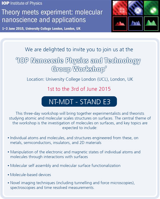 NT-MDT will participate in "IOP Nanoscale Physics and Technology Group Workshop" 1st to 3rd of June 2015