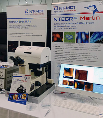 New joint product of NT-MDT SI and ICAPPIC - NTEGRA Marlin, the first AFM-RAMAN-SICM product was shown at the booth of NT-MDT Spectrum Instruments. Live out-of-lab measurements of lining cells by means of SICM technique gained a great interest among the workshop participants.