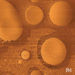 The time changes of the imprint profile hint at the affine character of the recovery similar to the finding in the experiments on styrene-butadiene copolymers [24]. In the same paper, it was shown that the depth of the imprint follows the variations of the corresponding homogeneous creep-recovery experiment. Therefore, by imaging the imprint one can obtain the variations of the polymer compliance function. This example shows that local mechanical properties of polymers and other materials can be examined in different AFM-based experiments with the choice of the most appropriate mode.