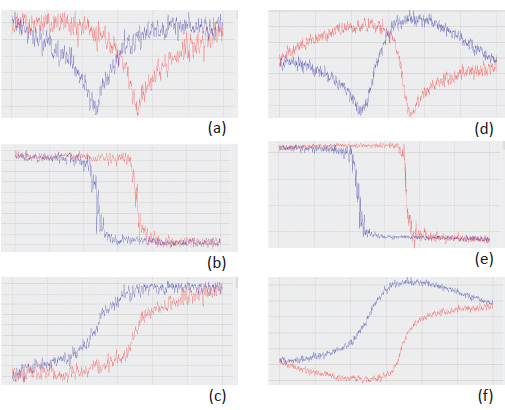 Measurements of the domain walls dynamics and wall roughness of PLZT are described in more details in [13]. The PFM spectroscopy data, which were obtained for different amplitudes of the electric field excitation, are presented in Figures 8a-f. The shape of the amplitude, phase and piezo-response curves is similar to one obtained for PZT sample. The coercive voltages are below 10V. With the increase of the excitation voltage the signal-to-noise ratio of the curves improves yet it leads to a noticeable deviation of the phase of the piezo-response curve and increase of the effective work of switching.