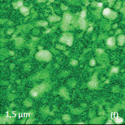 Another important parameter for measurements of small cantilever deflections and amplitudes is the optical sensitivity, which is the reversal of the probe length. Therefore, the shorter probes, which are stiffer than longer ones, do provide a better signal yet their applicability is directly related to mechanical strength of the sample. The samples examined in our studies were stiff enough that we can use the conducting probes with spring constant of ~40 N/m. This helps minimizing the undesirable cantilever-sample electrostatic effects, which can be substantial when soft probes are applied [7, 9]. In NEXT scanning probe microscope, PFM studies can be performed using the voltage in the (-50 V) – (+50 V) range depending on the sample nature and thickness. The use of lower voltages has an advantage of reducing the electrostatic force interactions, which might “contaminate” the piezo-response measurements. An electric excitation with low voltages (below 1 V) is particularly important for spectroscopic measurements.