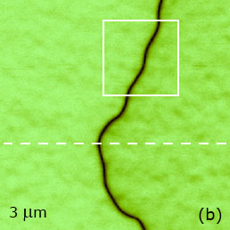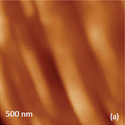 These features as well as small islands on the similar height can be assigned to the crystallographic steps in the b axis which has a crystallographic period of 1.27 nm. The VPFM phase image (Figure 12b) is featureless, most likely, because the crystal consists of equal number of positive and negative polarization domains with no piezoelectric effect.