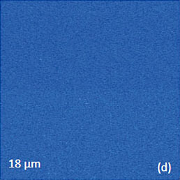 The mechanical tip-force control during scanning in the contact mode is performed by varying the deflection set-point. The chosen set-point should insure a stable tip-sample contact and prevents the sample damage. In some cases the scanning probe might swipe a surface contamination and this helps for establishing the direct contact with the examining sample. The above considerations are illustrated by imaging of a ceramic sample of PLZT in Figures 3a-d. The imaging of PLZT surface in the oscillatory amplitude modulation mode revealed a presence of surface adsorbate, which might originate from debris of polishing procedure or contamination during storage. This adsorbate layer, which is seen as bright patches in the height image, was gradually removed by a scanning probe during when PFM measurements in the contact mode were initiated, Figures 3a-3b.