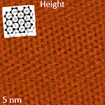These dC/dZ images were recorded with the scanning rate in the 1-2 Hz range that allows precise recording of the surface corrugations reflecting atomic and molecular arrangement in these samples. The practically immobile positions of donut-shaped and ribbon-like self-assemblies of semifluorinated alkane (Figure 4) underline low thermal drift of the microscope.