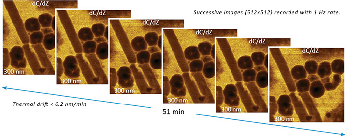 Figures 4. Demonstration of low thermal drift on the sample of self-assemblies of semifluorinated alkane on HOPG