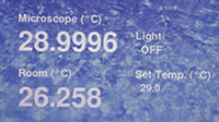 Such fluctuations are on the extreme side, but they can be successfully dampened by the cabinet features so that the variations of the microscope temperature are only in the 8 millidegree °C range.