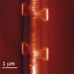 IR reflection contrast of thin and soft structures easily detectable. Each of five 3.4 nm steps is resolved. Spatial resolution is better than λ/1000.