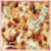 Simultaneous AFM imaging allows one to correlate cathode chemical properties with its topography (roughness, grain structure etc.).