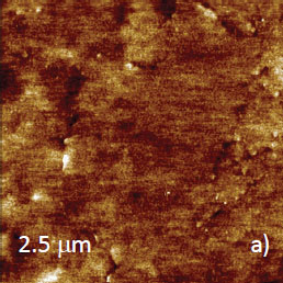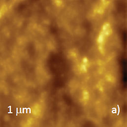 In this mode the lowering of Asp leads to stronger tip-sample force that influences the image contrast. At low force the chosen location is characterized by a smooth surface morphology with several small features as seen in height and phase images, Figures 2a‑b. At higher force, the images were transformed into the pattern (Figures 2c-d) with a detailed structure.
