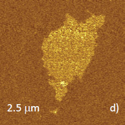 In last 10 years, compositional imaging has been enhanced with introduction of combined AFM/Raman and AFM/IR techniques. Therefore, chemically different species of complex materials can be recognized by selective Raman scattering or IR adsorption of particular chemical groups. In Figures 5a-c the large-scale height image of PS/LDPE film is shown together with the maps of PS- and LDPE-specific Raman bands.A comparison of the height image with the Raman maps confirms the assignment of valleys to PS and mesas to LDPE. The important feature of spectroscopic studies is the spatial resolution that can be far beyond diffraction limit of IR and visible light applied in these techniques. For carbon materials AFM/Raman method provides 10-20 nm resolution in tip-enhanced studies with special probes.
