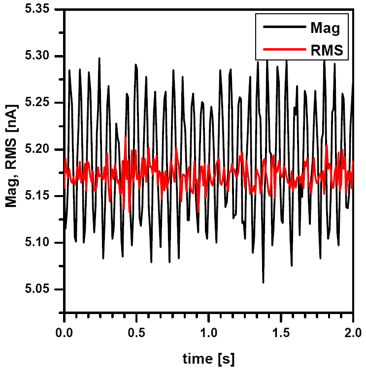 For semi-contact mode in liquid, the first option to optimize is the proper choose of feedback signal. In liquid the preferred is the RMS signal from the photo detector, because it gives less noise at low frequencies than the magnitude signal which is amplified by lock-in amplifier (see Fig.1). To ensure proper range of RMS values, preamplifier can be used (x10), which rises the values of the RMS to the level that the set point value can be adjusted more precisely.
