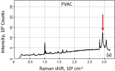 This means that Raman spectroscopy reveals the under-surface material that is PVAC. This is not surprising because surface potential senses the top layer whereas the Raman spectroscopy detect the signalfrom sample with the focal depth is ~0.5 micron that is around half of the thickness of this film.