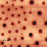 The Raman spectroscopy capability in detection of sub-surface composition has been also demonstrated at the other two locations of the thick PS-PVAC film, Figures 5-6. The high surface potentialis detected at the depressions of different size. In Fig. 5. Similar surface morphology has been observed in the another regions, Fig. 6.