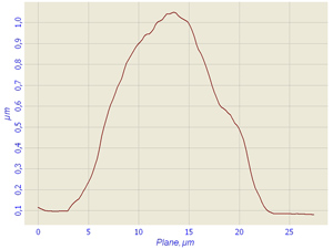 We used contact Si probe CSG11 (NT‑MDT SI) with spring constant 0,03 N/m, curvature radius of tip 50-60 nm, and tip height 10-20 mkm. Resonant frequency was selected within15-40 KHz. Scan rate in this method was about 2 line/sec. Decrease of the scan rate led to more mechanical damage of sample by silicon probe.