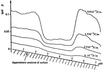 Fig. 1. Line scans across a single magnetic domainfor various initial tip-sample spacings are presented [1]