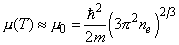 called the Fermi level. All quantum states above the Fermi level are not occupied with electrons. In a metal, the chemical potential slightly depends on temperature, therefore it can be approximated by
