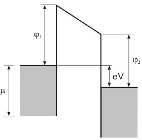 To derive the formula of tunneling current in the MIM system (chapter 1.2.1) we assume that:
