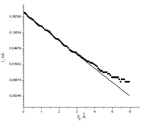 spectroscopy mode. According to (11) from chapter 1.2.1, in absence of a condensate, a typical current-height relation is an exponential current decay (Fig. 1) with a characteristic length of a few angstrom [1, 2].