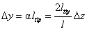 From formula (8) and diagram for the beam vertical bending of y-type (Fig. 1) it is easy to derive the tip deflection