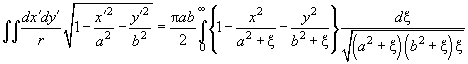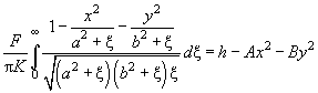 while the left sides contain integrals of the same type. Therefore, it is clear that the contact zone (which is the region of integration in integral (10)) is limited by ellipse of the following type: