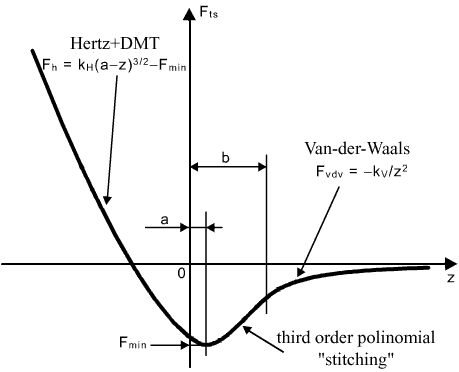 ). Far enough from the surface, the Van der Waals forces dominate. Then, to join the solution, the interaction force between these regions is approximated by the third-order polynomial whose coefficients are dependent on parameters