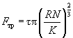 where R – tip radius of curvature, N – normal loading force, K – reduced Young's modulus, given by