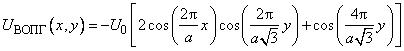 Basing on the calculated Van der Waals potential which determines the interaction energy of a separate ("point-like") atom with a sample, one can find the interaction potential of the whole tip with the surface by summation the obtained in the Appendix function over all the tip atoms. This two-dimensional distribution of the potential of the tip positioned over a given surface point describes the sample in our model. This potential also has the periodic structure reflecting the sample lattice. Note, that one should not confuse this distribution for interaction with an extended object with a usual atomic lattice potential which describes the energy of sample atoms interaction with a point-like particle. In our case, this is the potential of interaction with the whole tip.