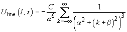 To obtain the potential of interaction with atomic plane one should sum the derived formula over all atomic chains on the surface properly changing parameter